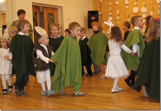 Sako, kad su naujais metais galima sveikinti iki birželio 30 dienos. O čia pavasaris dar net neatėjo, tai ko gero pats laikas apie Kalėdas parašyt matyt Kalėdos darželyje vaikams buvo be didelio pasiruošimo – mėnesį prieš šventę (ir du po jos) jie nelankė darželio, bet pas Kalėdų senelį vis tik nuvažiavom. Dainelių nemokėjo, šokių irgi, bet kažkaip sudalyvavo vis sekdami ką daro kiti vaikučiai, vis atbėgdami iki mūsų. Ir netgi eilėraštį į mikrofoną Vakaris pasakė. Kiškio kostiumas kaip ir daugelio mamų (ko gero) buvo “siūtas” paskutinę naktį prieš šventę ir labai pergyvenau, kad iš kiškių bus prasčiausi, bet anaiptol – kiti kostiumai buvo pirktiniai, o mūsiškiai su tom kiškio-avies ausim atrodė originaliai