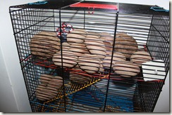 Paprastai kai vaikai žaidžia susikaupę nelendu jiems į akis ir leidžiu žaisti kaip jau jie nori. Pasižiūriu šiandien – išsitraukę bulvių pintinę dėlioja – ant rankšluostėlio, paskui perdeda ant kito, tuomet sudeda į puodus, tada vėl ant rankšluostėlio, tada jį suvynioja, tada vėl į puodus. Ir tylu… O aš ir dėmesio nebekreipiu. Kol pamačiau, kad gražuoliukai žiurkėnui ramiai mirt neleidžia (skaičiuoja paskutines dieneles mūsų augintinis) – sukrovė visą pintinę bulvių į narvelį, o kraiką krauna į puodus :) Ir tokie užsiėmę, susikaupę…